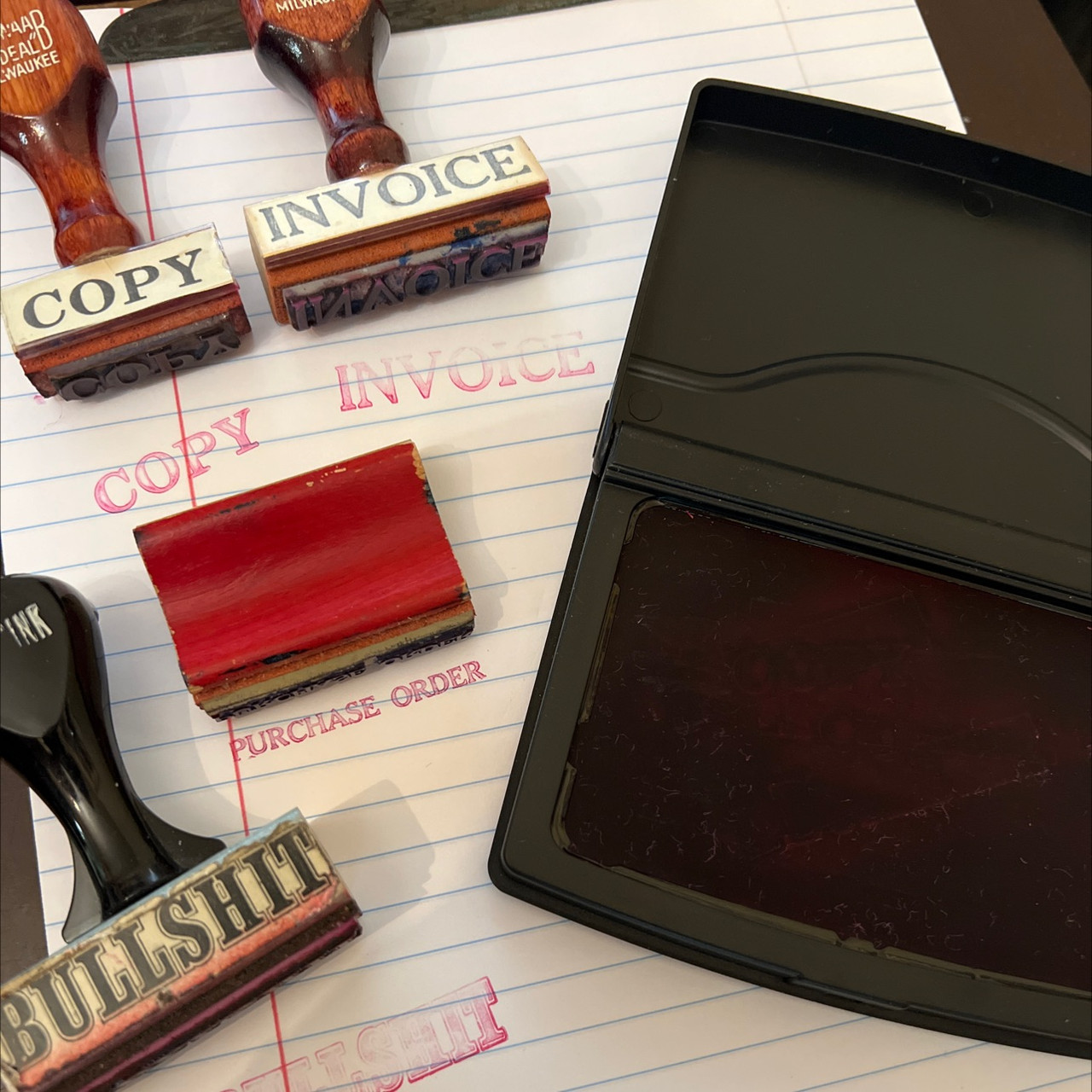 Used vintage hand stamp collection, Copy, Invoice, Purchase Order and BULLSHIT, in great condition. #stamps #lightningdeals #lightningco